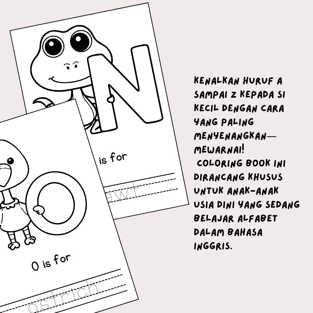 Coloring book ini dirancang khusus untuk anak-anak usia dini yang sedang belajar alfabet dalam bahasa Inggris.